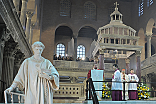 Tutto è pronto nella Basilica romana di San Lorenzo fuori le mura per accogliere la visita di Benedetto XVI, domani, domenica 30 novembre, in occasione della chiusura delle celebrazioni per il 1750° anniversario del martirio del protodiacono. L'Anno laurenziano era stato aperto il 1º gennaio scorso dall'allora cardinale vicario Camillo Ruini con una solenne messa ed è proseguito con una serie di iniziative che hanno coinvolto la comunità e non solo. Infatti, sono stati numerosi i pellegrini di altre diocesi italiane ma anche provenienti dall'estero, ad esempio Germania, Spagna e Francia, che si sono recati in visita sulla tomba del martire.